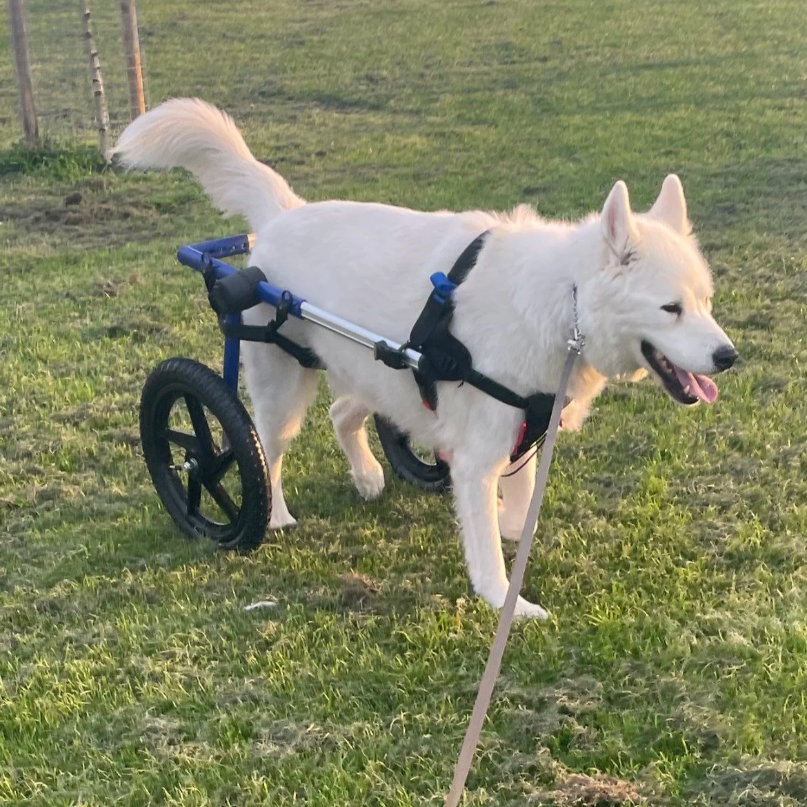 Kobe required a specific type of medication to keep his allergens and inflammation at bay. Something we were sadly never offered at all of the previous vets we’d visited previously. He also required hydrotherapy and sadly a wheelchair to help aid his recovery.